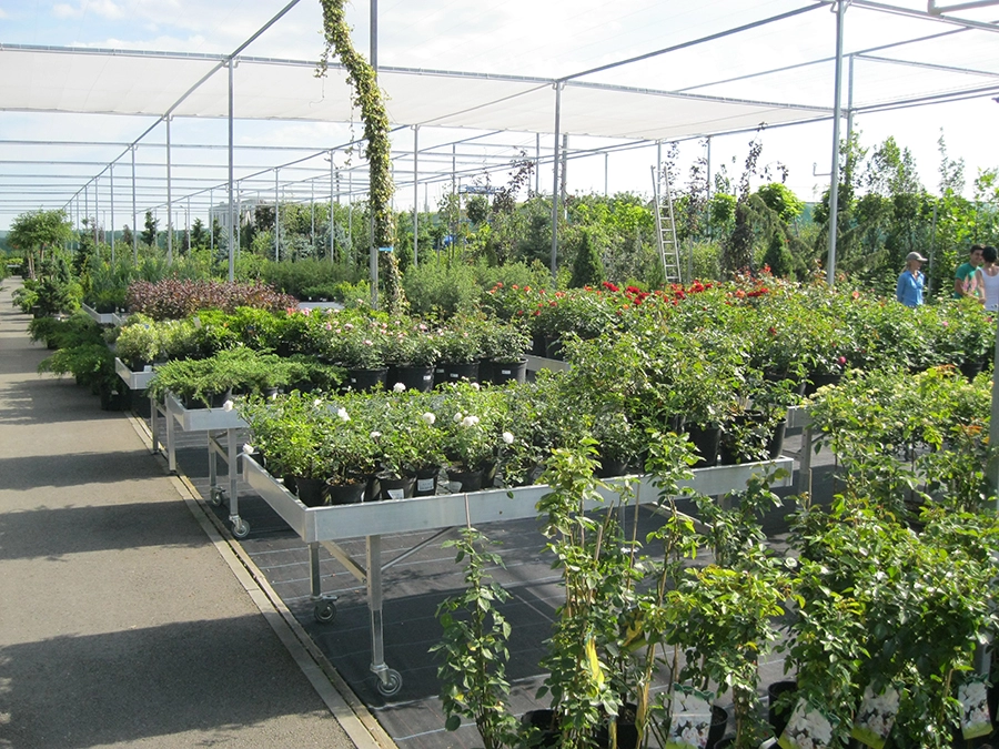 Tables de culture hydroponique.
